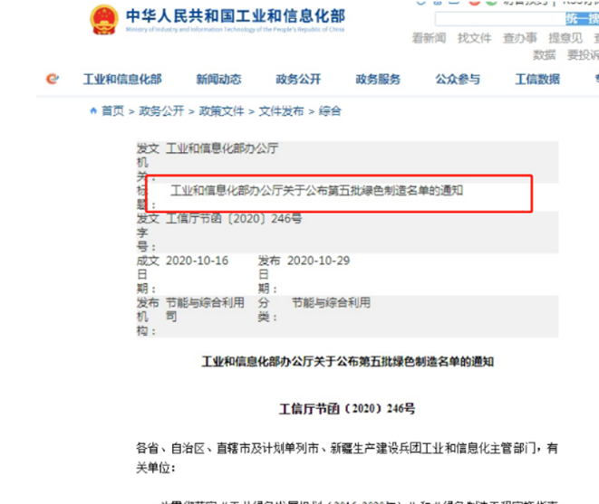 长江材料被列入国家工业和信息化部第五批绿色工厂